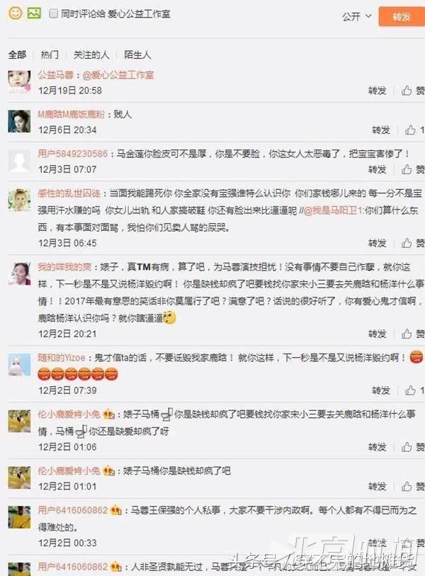 2017年12月25日晚間微博首次發(fā)聲闡明在婚變事件中自己的態(tài)度。她就與王寶強(qiáng)的婚姻表達(dá)態(tài)度,稱其“在十年婚姻和家庭生活中,生兒育女,付出所有,問心無愧”。